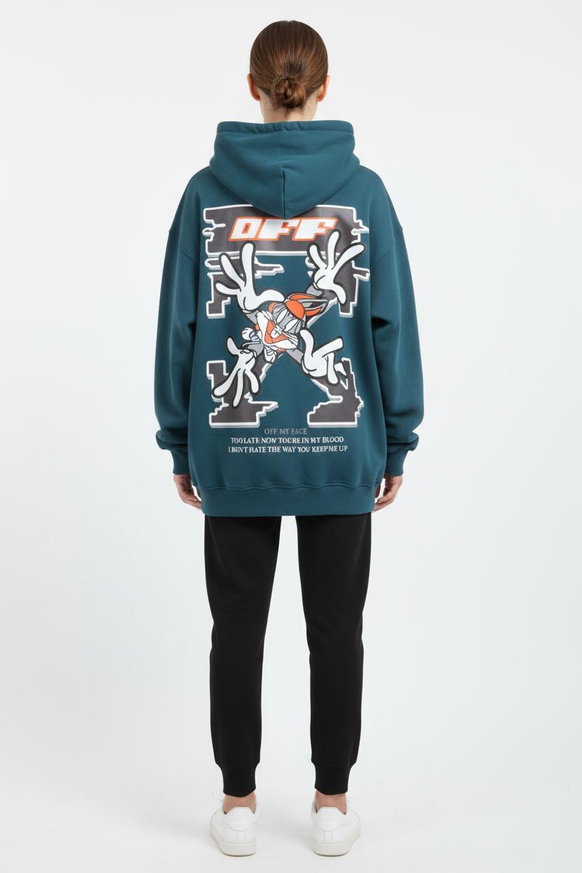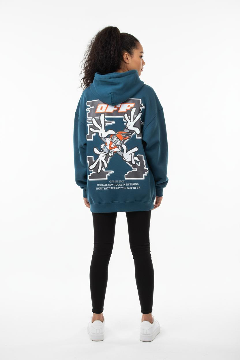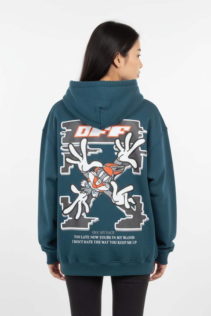 Bring fun to your style with our blue oily Bugs Bunny hoodie—one size fits all (50kg–100kg). Playful, comfy, and trendy.