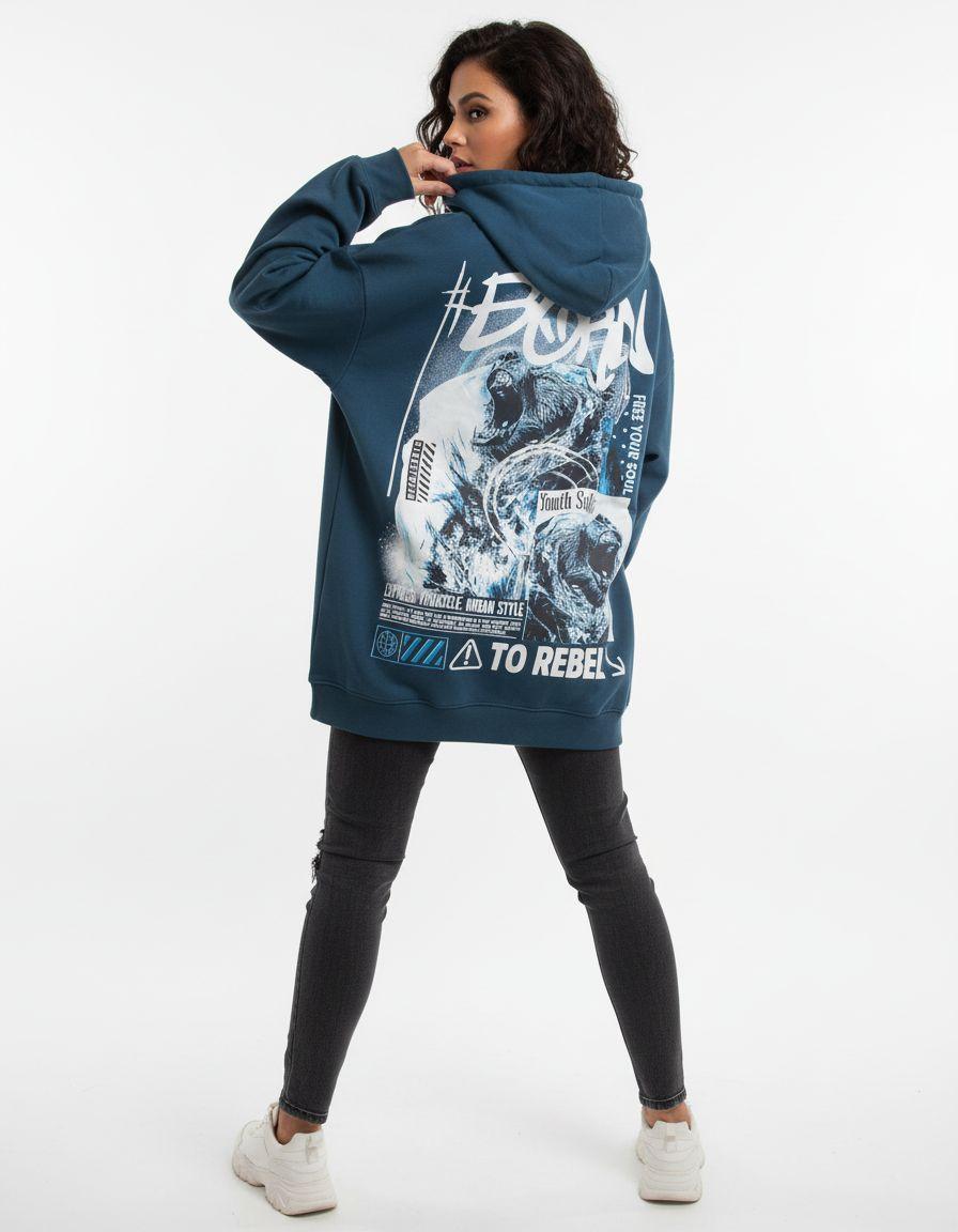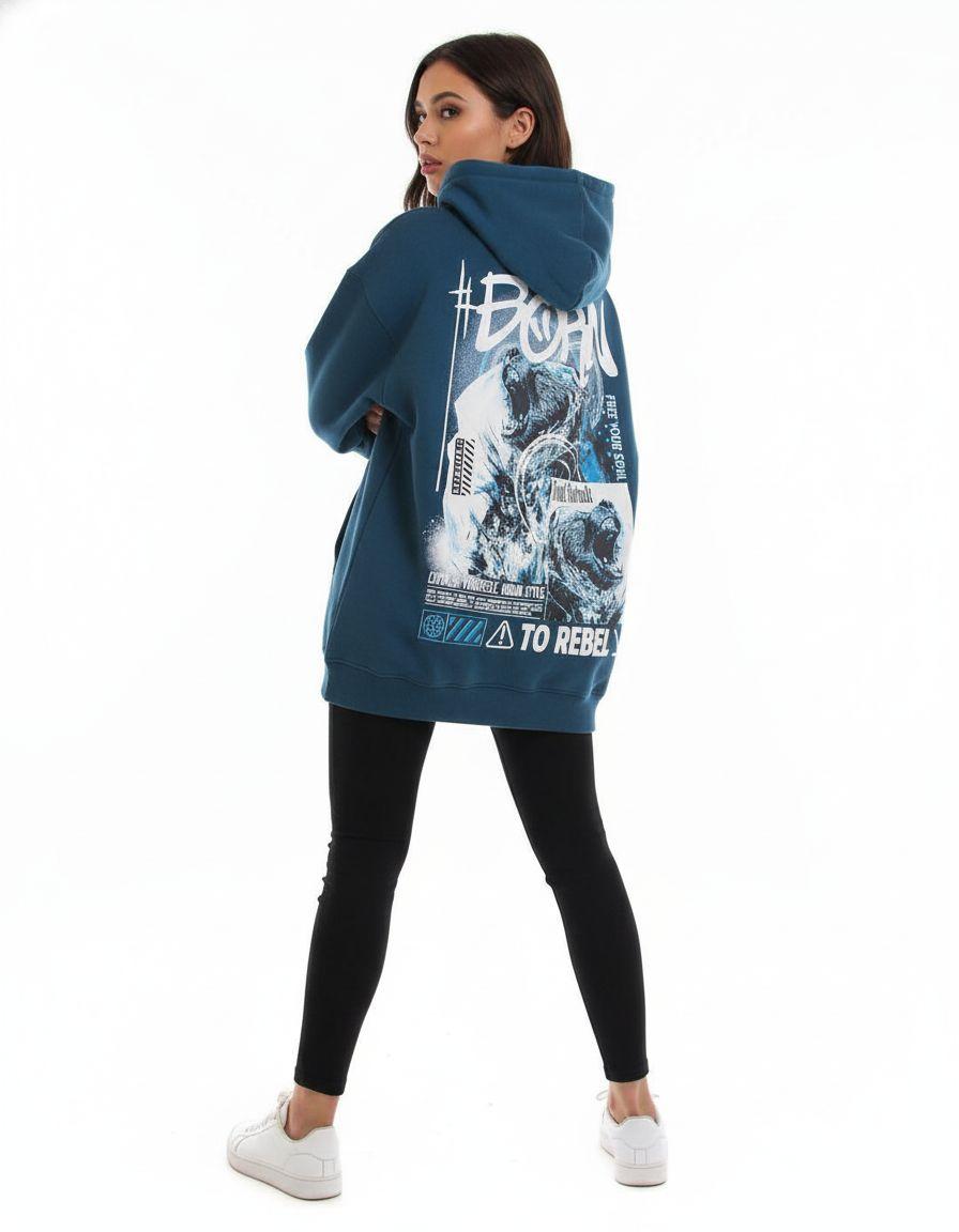 Step out in style with our blue, oily-finish trendy hoodie—one size fits all (50kg–100kg). Comfort meets urban chic.