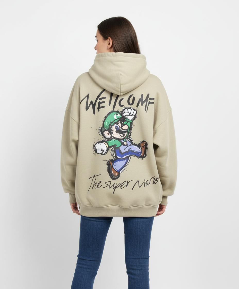 Level up with our mint Super Mario hoodie—one size fits all (50kg–100kg). Playful, cozy, and full of character.