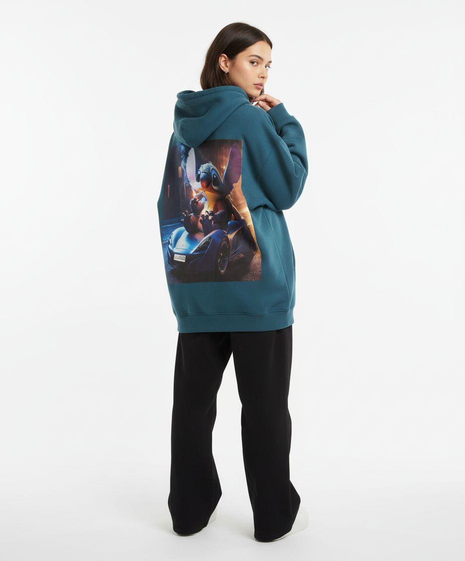 Add a playful vibe with our blue oily Stitch hoodie—one size fits all (50kg–100kg). Trendy, cozy, and fun.