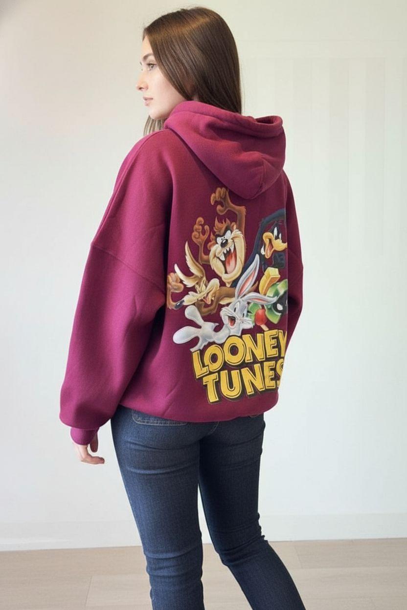 Bring playful charm to your wardrobe with our burgundy Mickey Mouse hoodie—one size fits all (50kg–100kg). Cozy, trendy, and full of character.